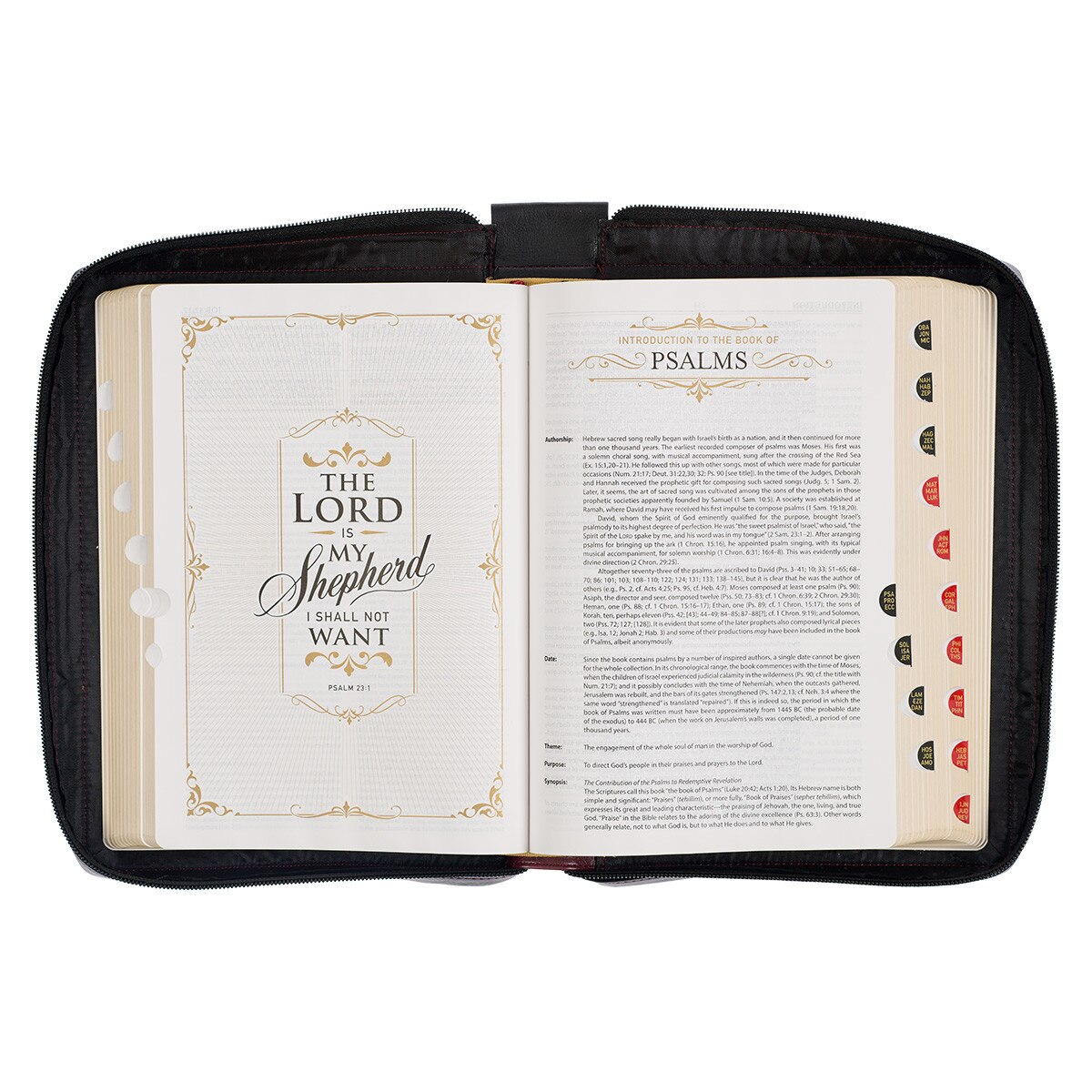 Burgundy And Black Faux Leather King James Version Study Bible With Thumb Index And Zippered Closure