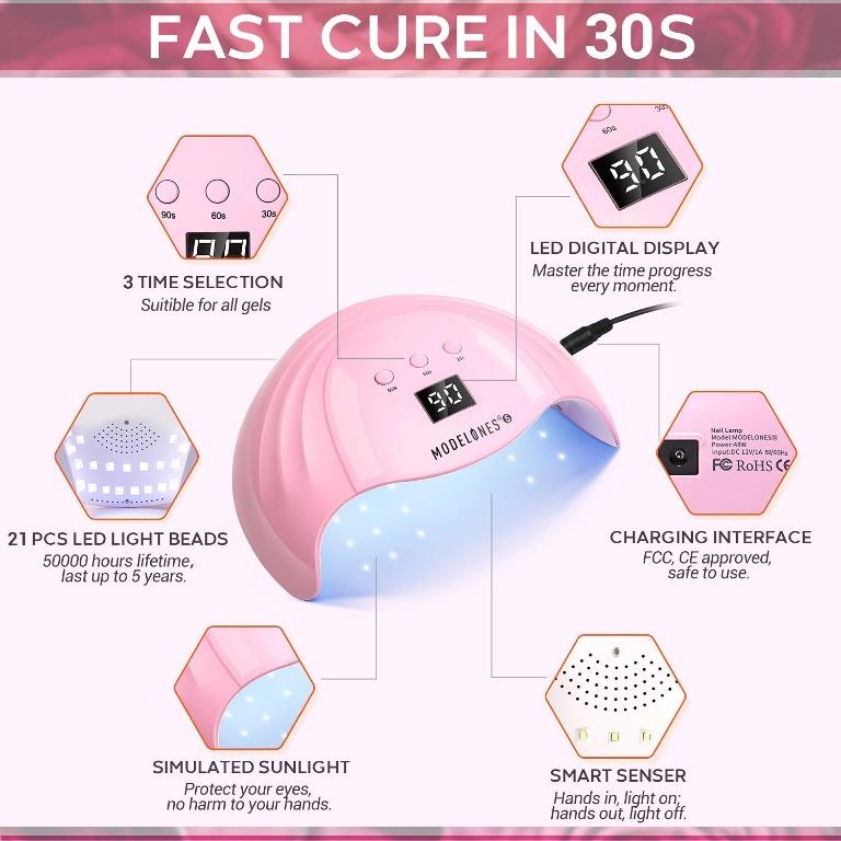 43 M Modelones 7 Colors Gel Nail Polish Kit Starter With U V Light 48w Led Nail Dryer Lamp Mirror Top Base Coat Nail Primer Essential Manicure Tools Nail Art Decorations Starter Kit For Beginner Diy Salon